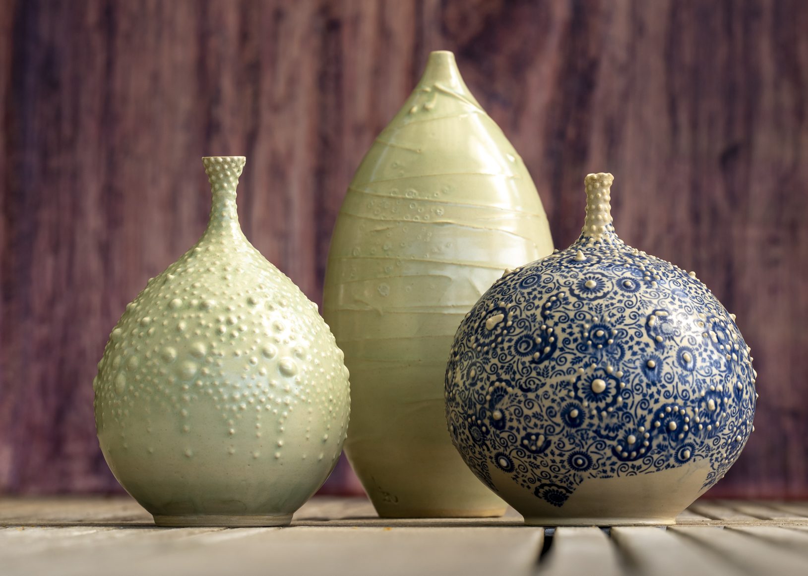 Liefde voor experimenteren met klei en decoratietechnieken.